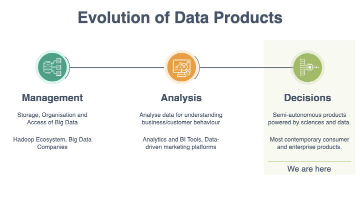 Historically data products were referred to products that helped better understand and utilize data – mostly analytics and BI products. In the past few years, most products are flywheels that run on a continuous stream of data and are powered by sciences.